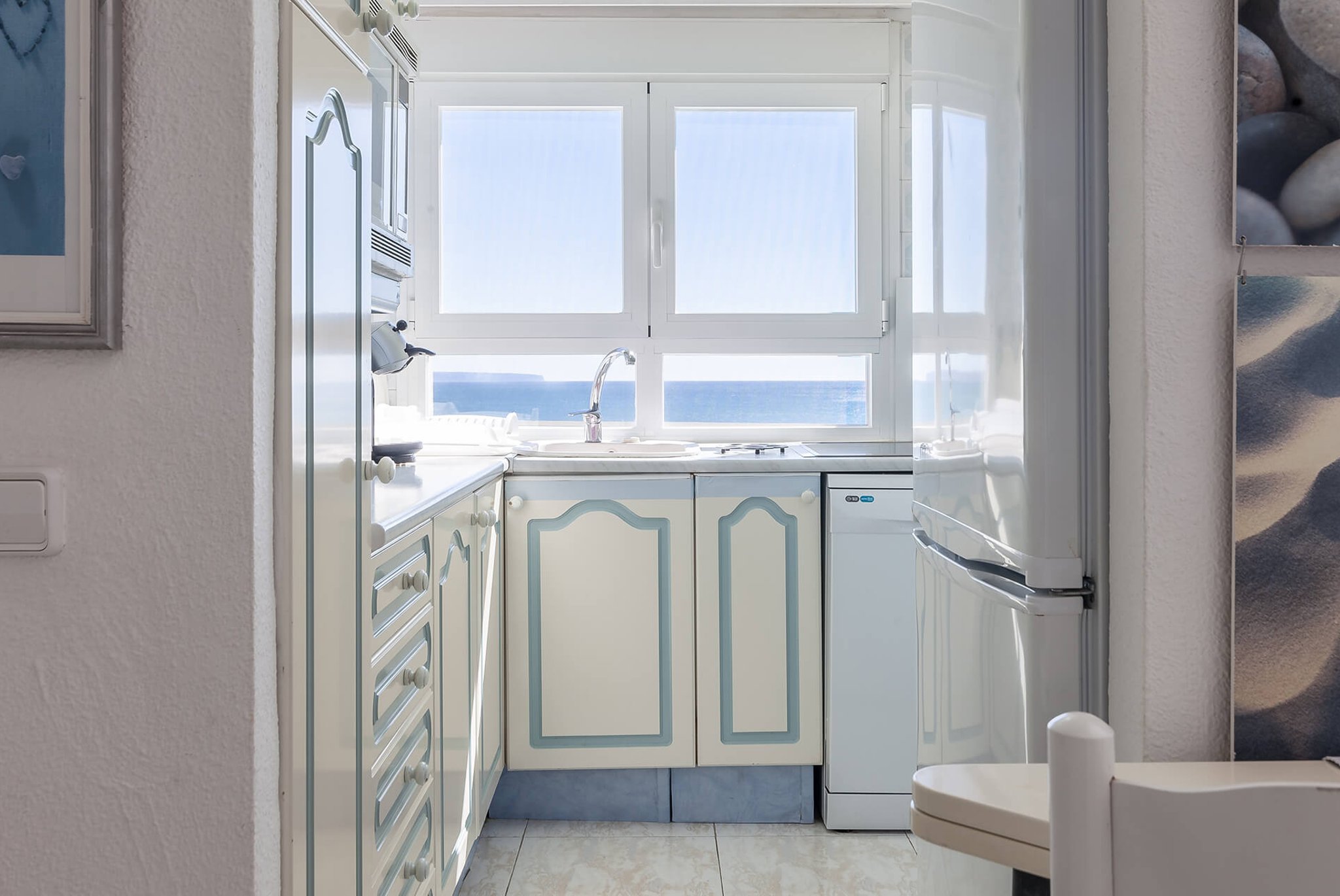 This seafront apartment is located on the 5th floor of a sought after building in Sant Agusti, just a few minutes’ drive from Palma center. The building has not only a fabulous pool by the sea it also offers direct access to the sea from the community. The property of approximately 70 m2 consists of a living dining area with open kitchen, two bedrooms and two bathrooms. The living room, the kitchen and the terrace have a spectacular sea views, and the terrace is large enough to easily accommodate 4 to 6 people. The apartment is in good condition but needs some modernization.