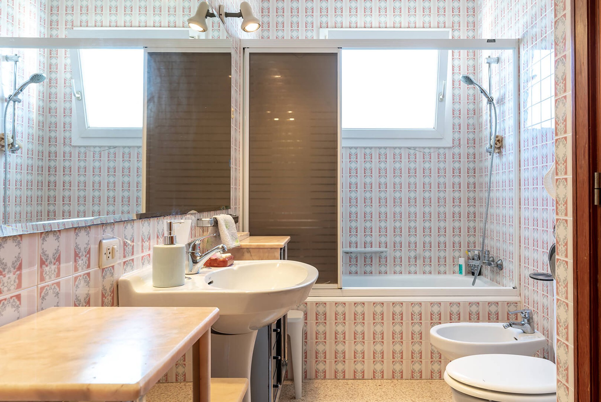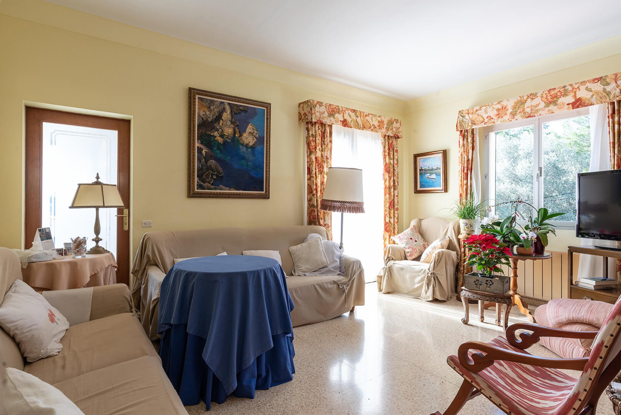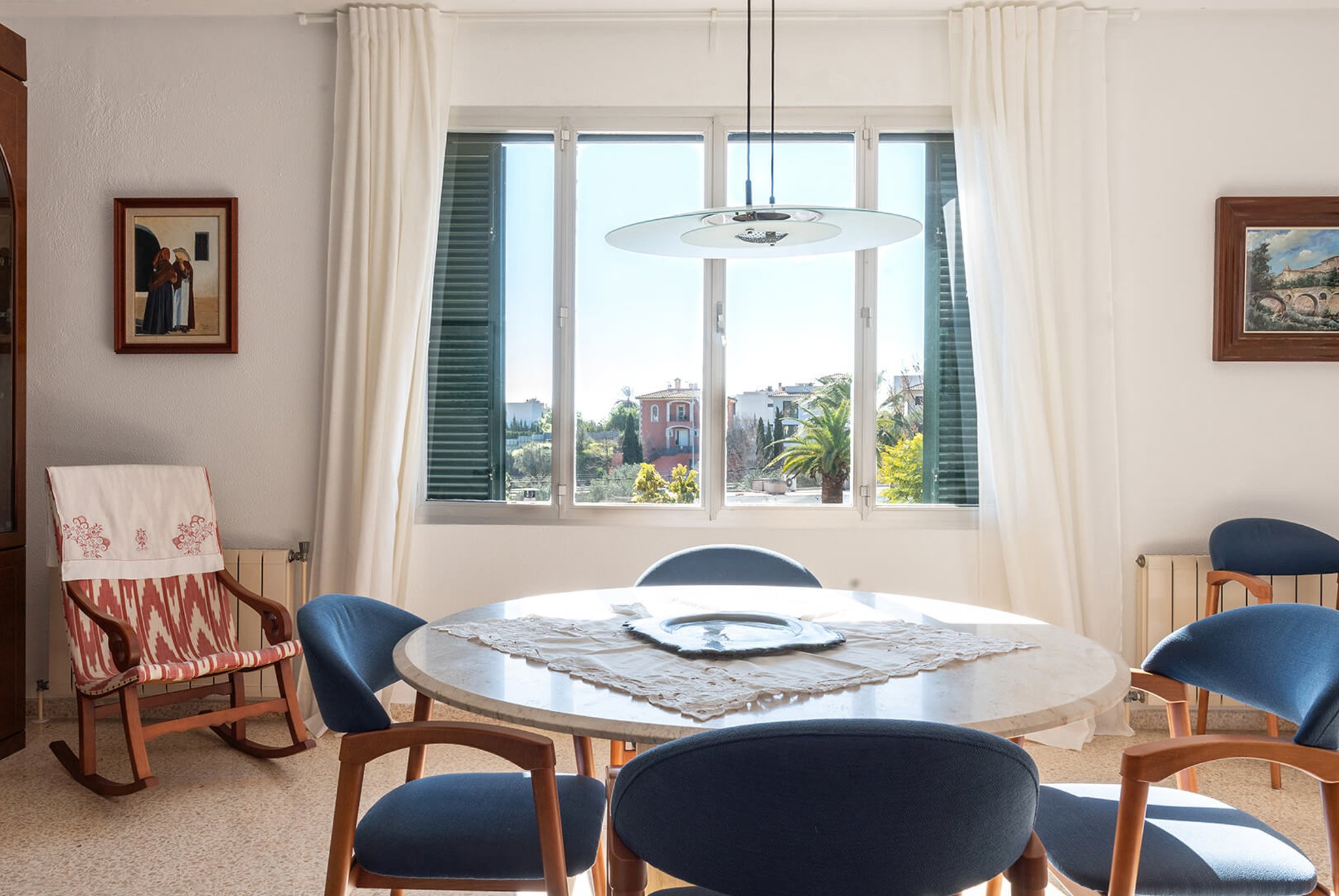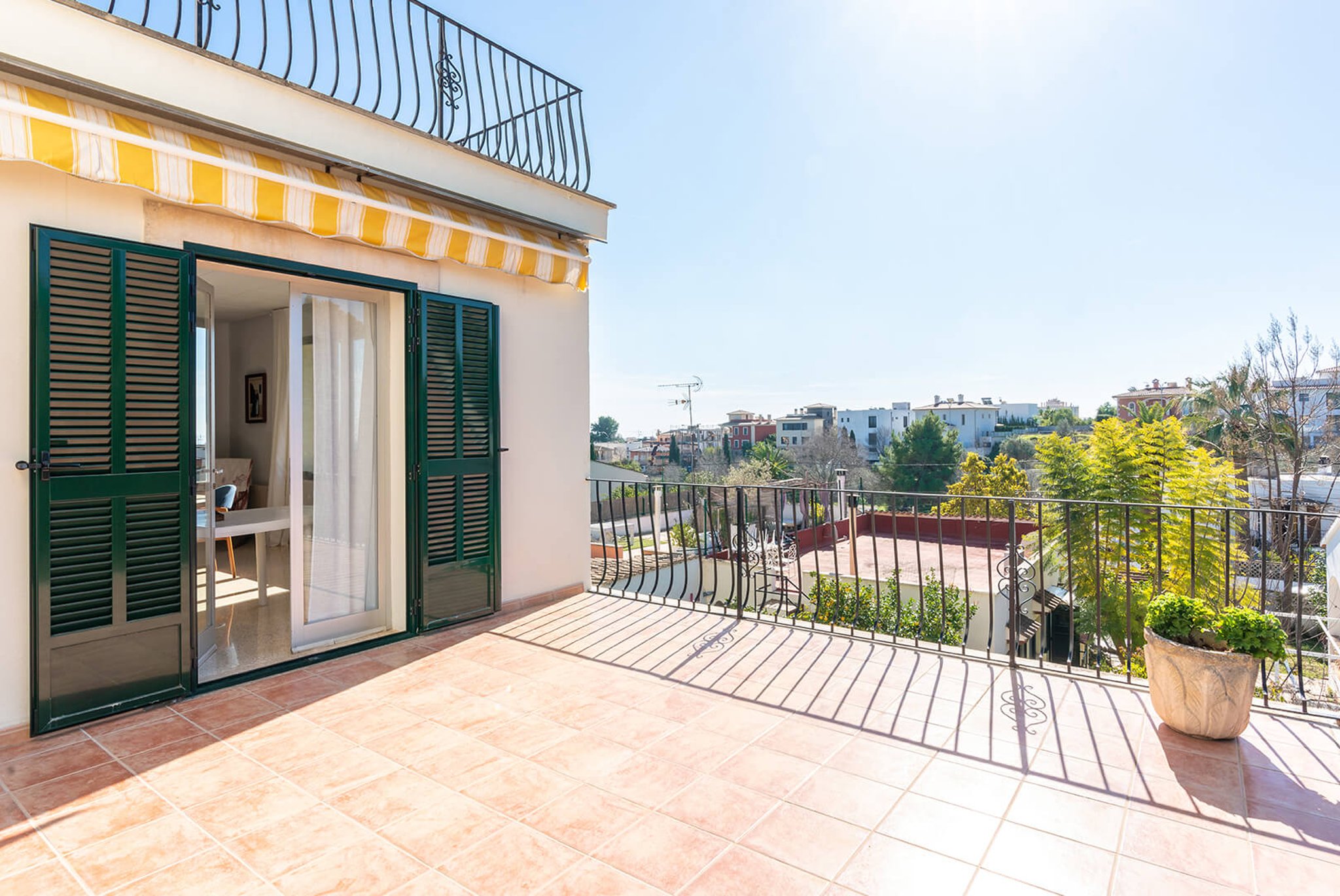 This three floor villa is located in the quiet, safe and popular residential area of Son Roqueta in the outskirts of Palma. The house is located as the last house on a quiet street.