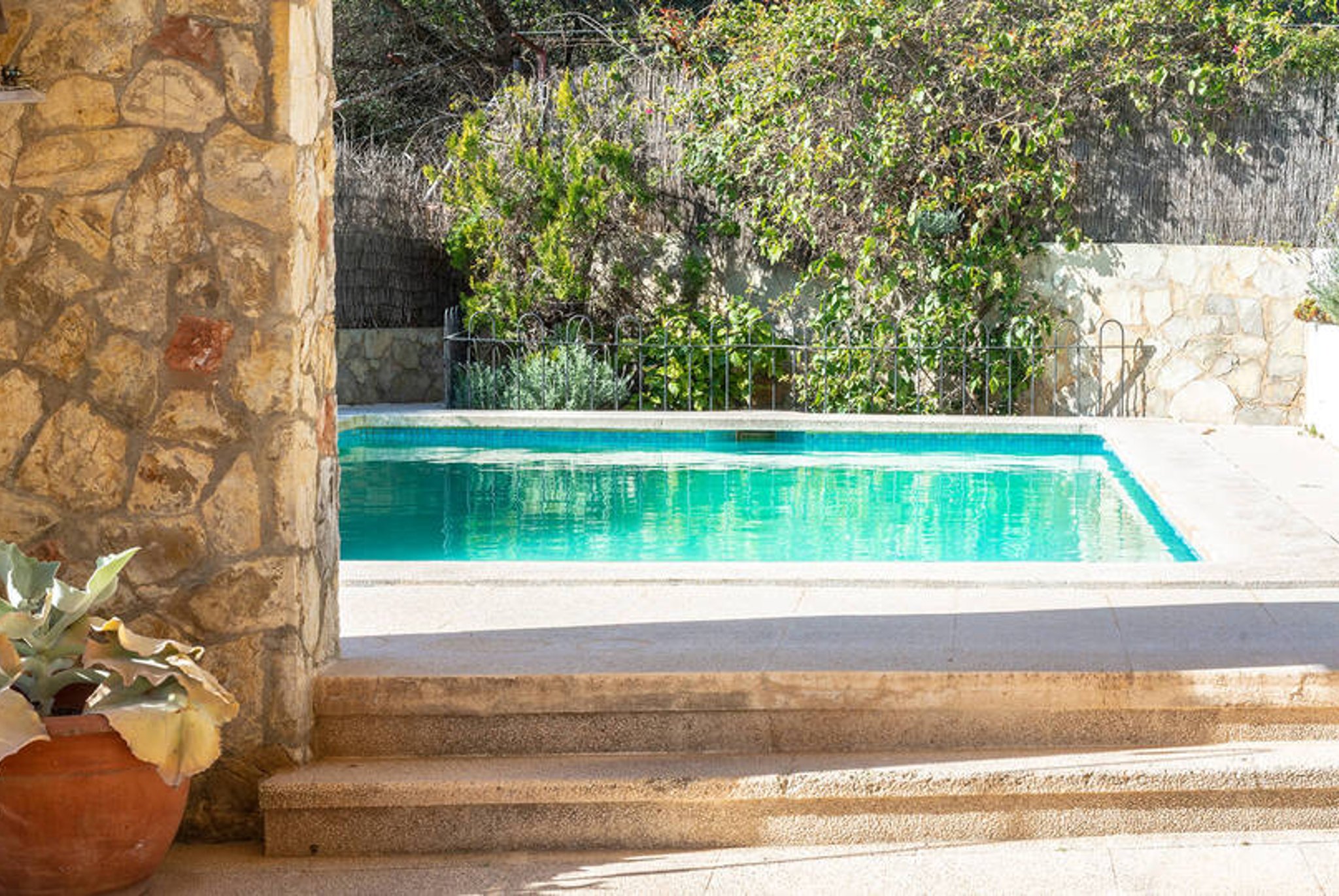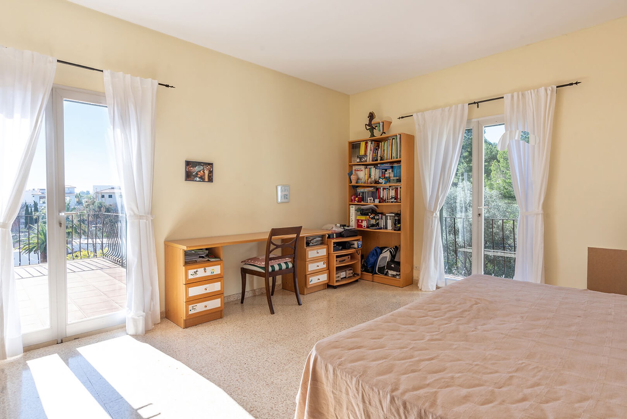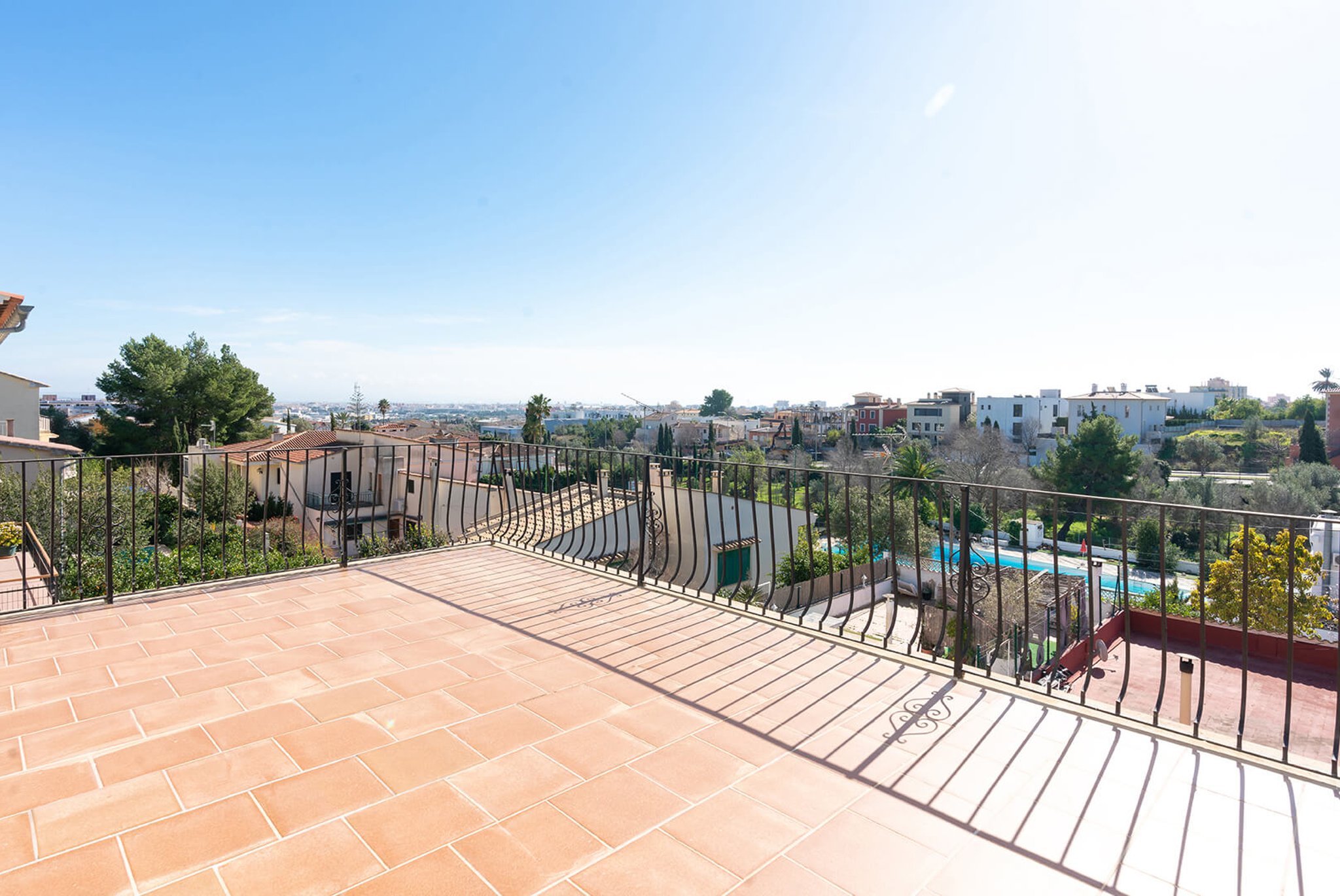 The house, which was built in 1970, is in original condition and needs a touch up. The total living area is 288 m2 and is divided over 3 floors. The property has great potential to become a very attractive villa. The house offers several terraces, a garden and a pool. From all the terraces you have a nice view of the city of Palma and you can also see the sea. The house consist of two floors and a basement. On the entrance floor which is 161 m2 there is a kitchen, living room and dining room as well as a bedroom and a guest toilet. There is access to terraces from all rooms. On the next floor, of 127 m2, there are 3 bedrooms and 2 bathrooms. 2 of the bedrooms have access to a large terrace and the third bedroom has access to a balcony. Upstairs you will find a large roof top terrace from which you have a beautiful view over the entire city of Palma and the sea. In the basement floor which is 102 m2 there is storage room, laundry room, garage and guest room. The garden surrounds the whole house and is about 500 m2 and includes a pool. Adjacent to the house is a green area where nothing can be built.