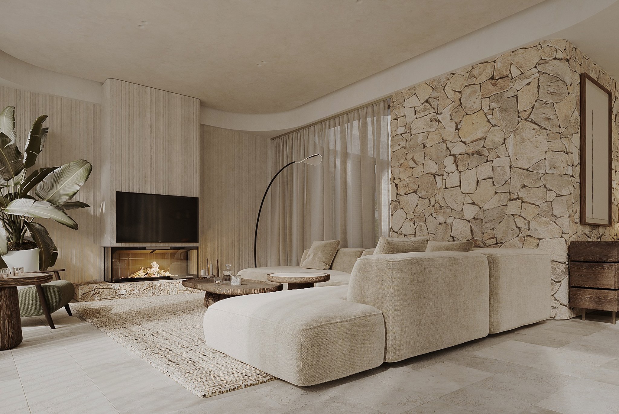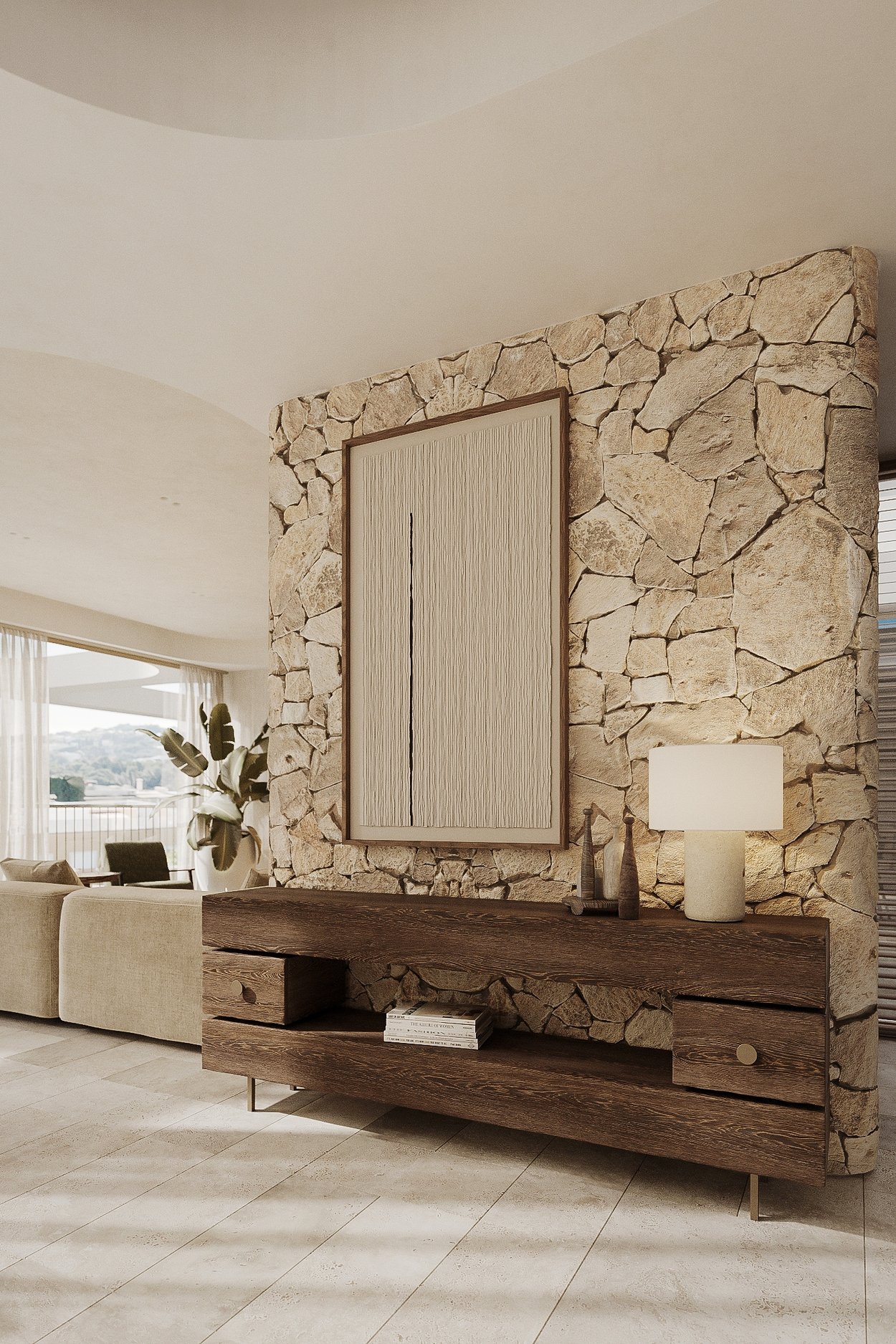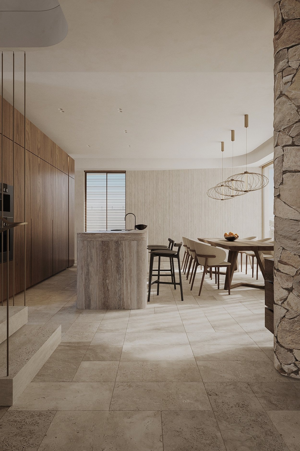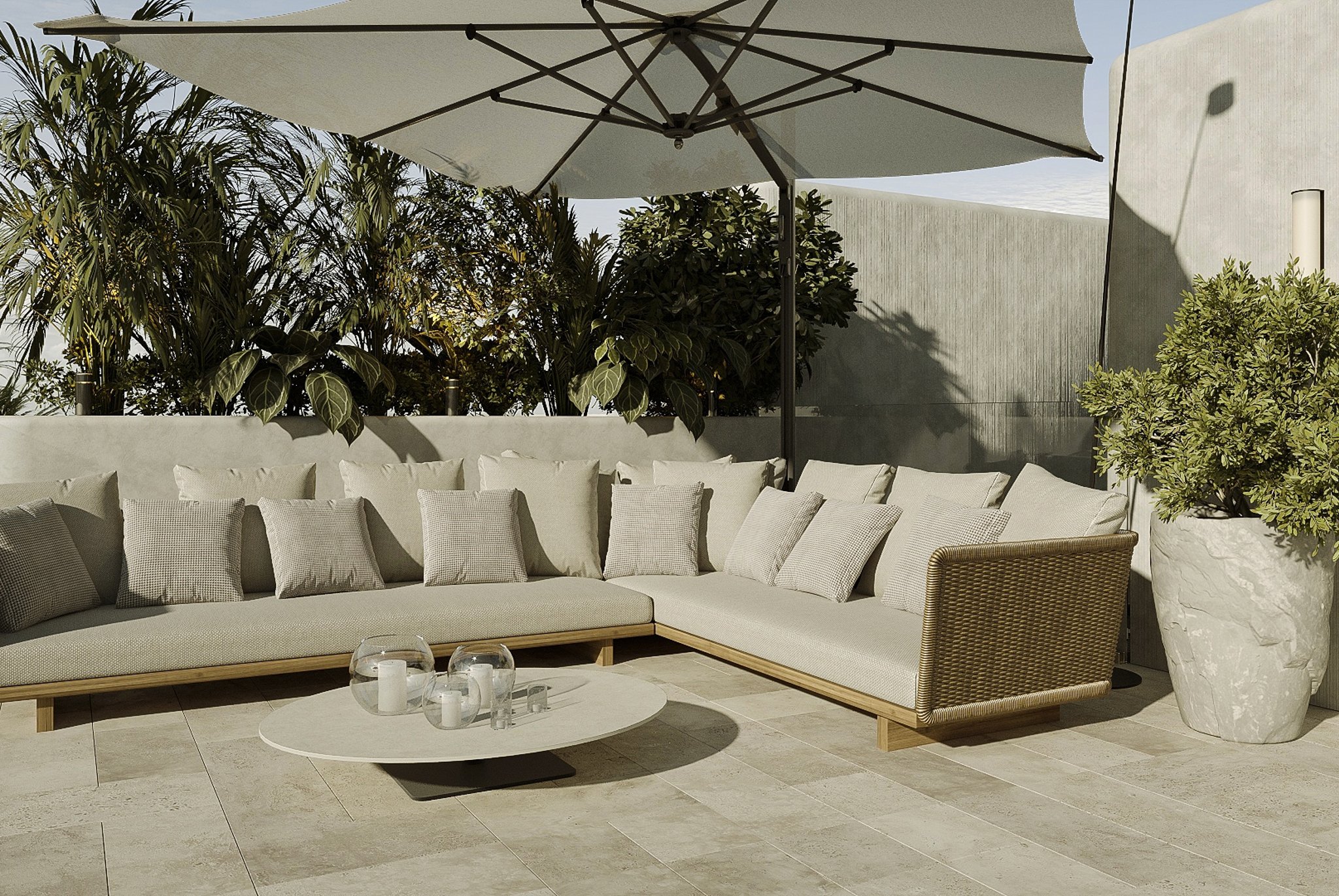 Denne lejlighed ligger på øverste etage og tilbyder et boligareal på 212 kvadratmeter, fordelt på tre generøse soveværelser og tre moderne badeværelser. Lejligheden har en åben planløsning, hvor det luksuriøse køkken er integreret med den smukke stue og spisestue. Lejligheden har også en privat balkon på 19 kvadratmeter og en privat tagterrasse på 68 kvadratmeter med betagende udsigt. Ejendommen er af høj kvalitet overalt med naturlige materialer som træ og sten. Store vinduer, skydedøre fra gulv til loft og tynde aluminiumsprofiler skaber en perfekt overgang mellem inde og ude.