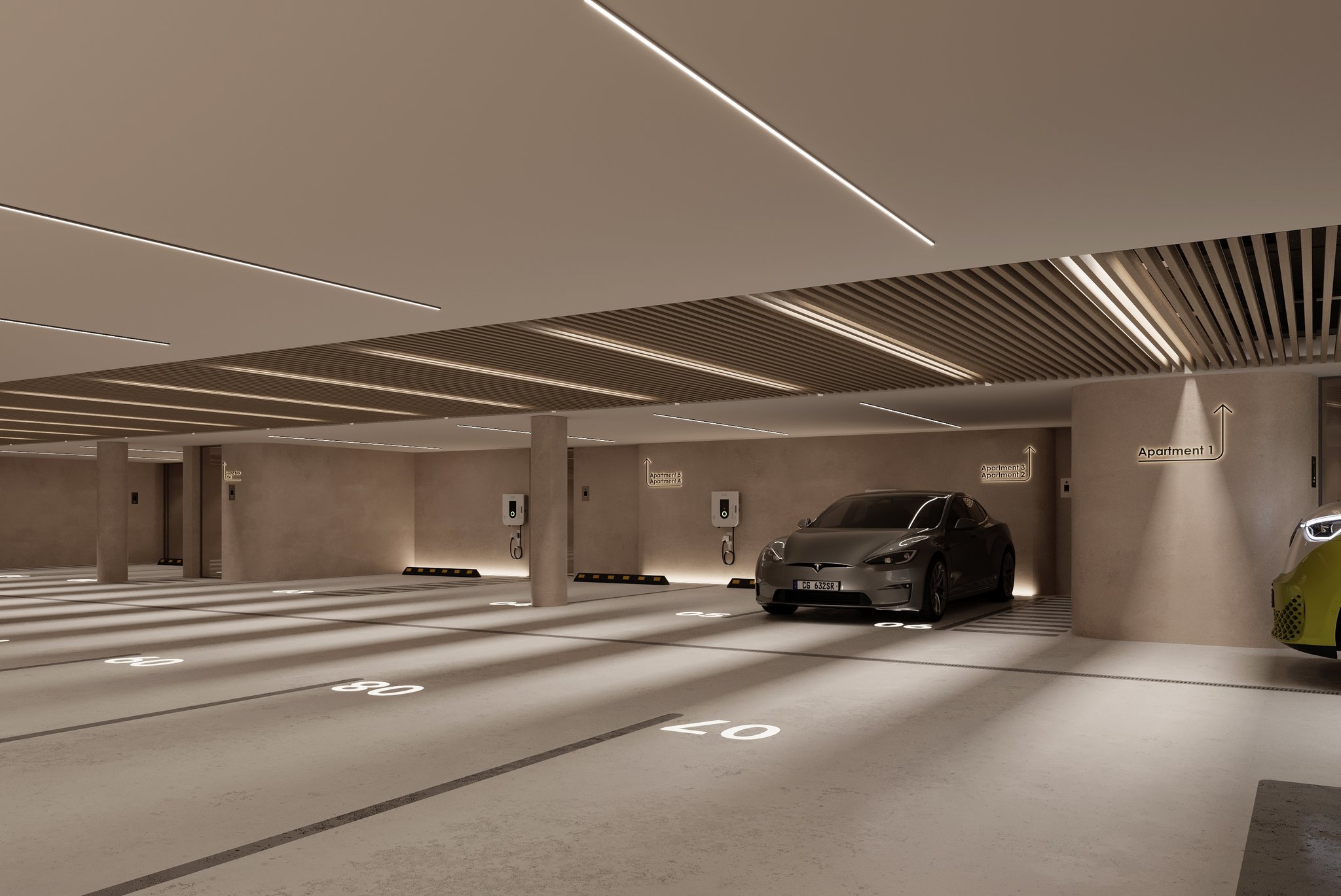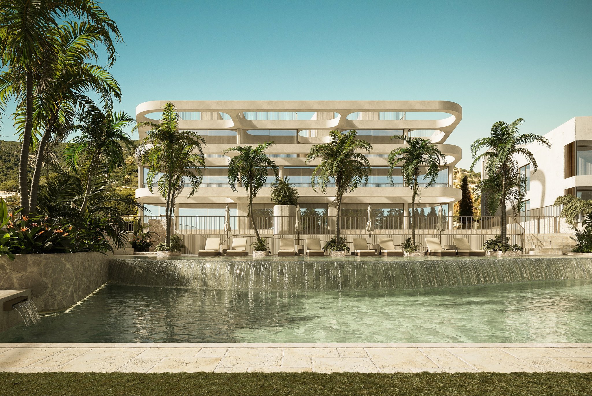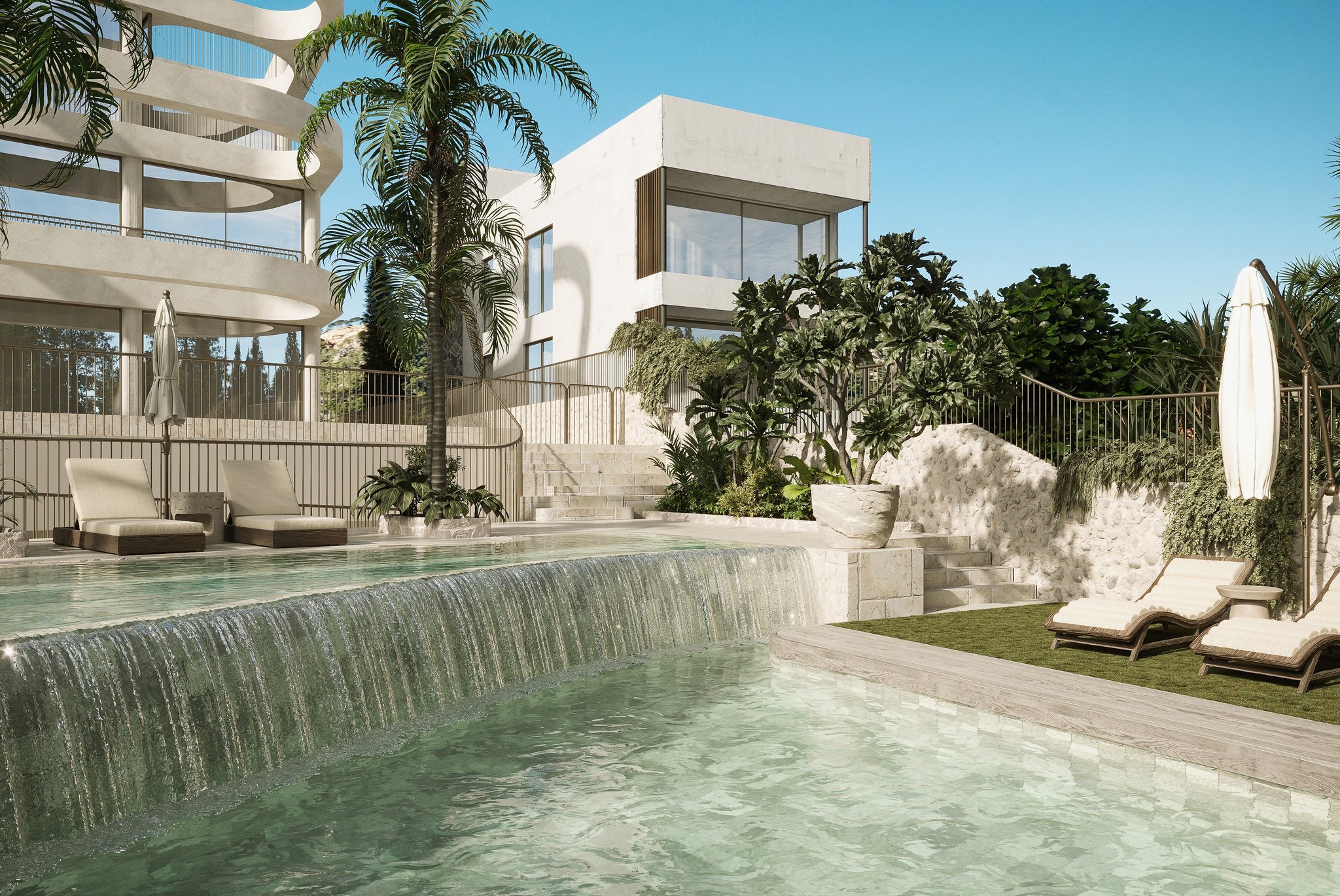 Projektet omfatter også en fælles swimmingpool med solterrasse, et fuldt udstyret fitnesscenter og en garage, hvor hver enhed har to private parkeringspladser. Fra garagen er der privat adgang til hver lejlighed, enten via elevator eller trapper.