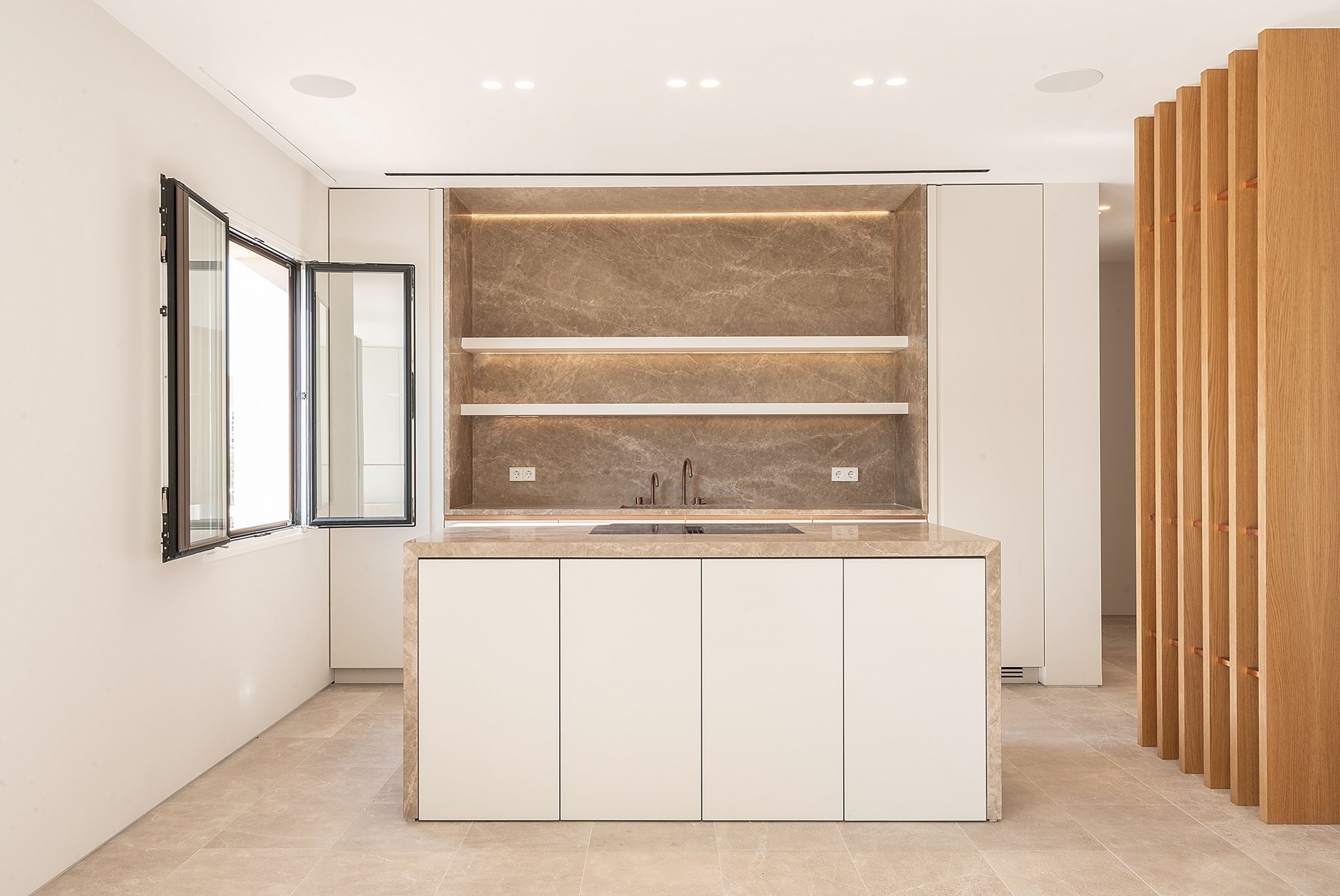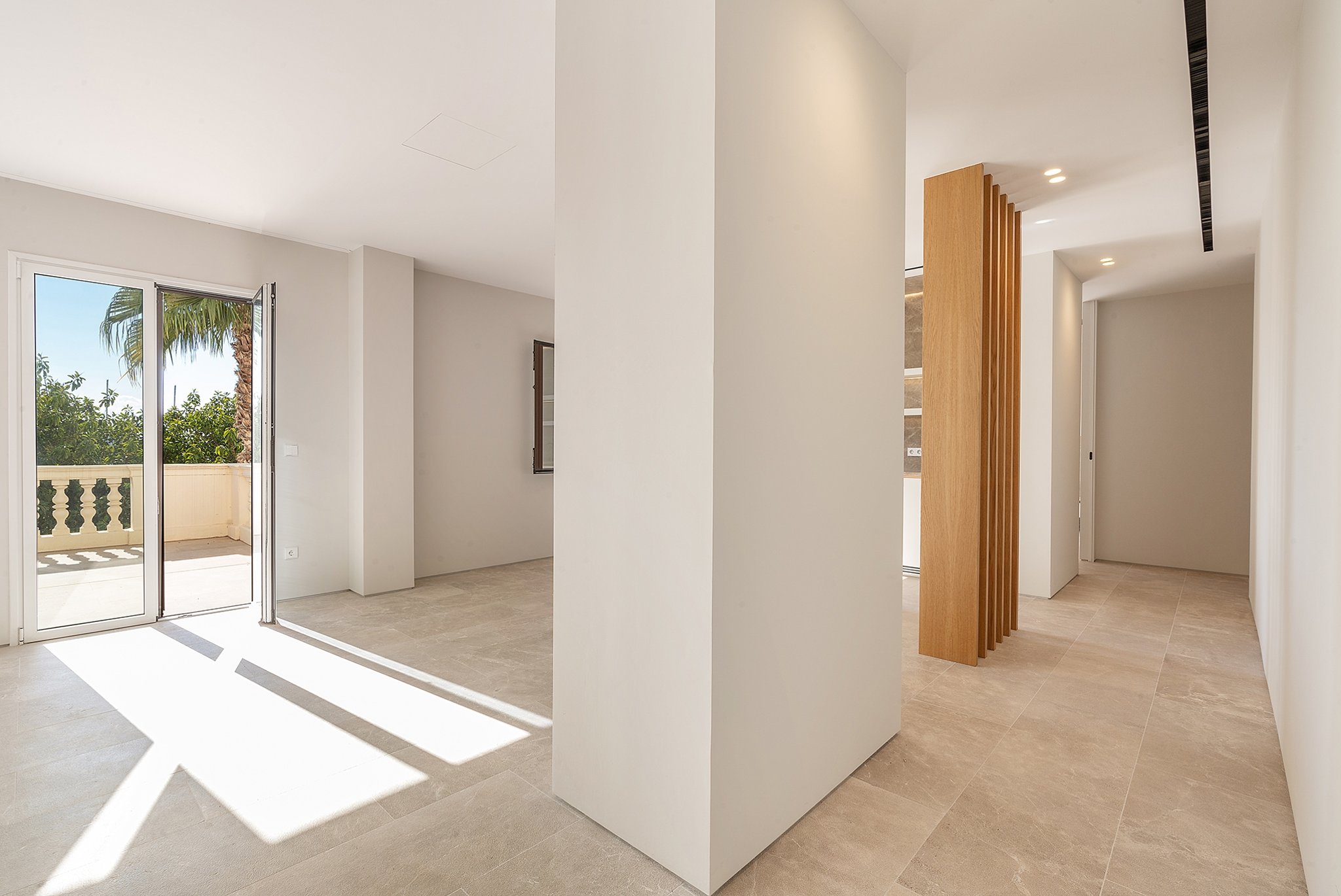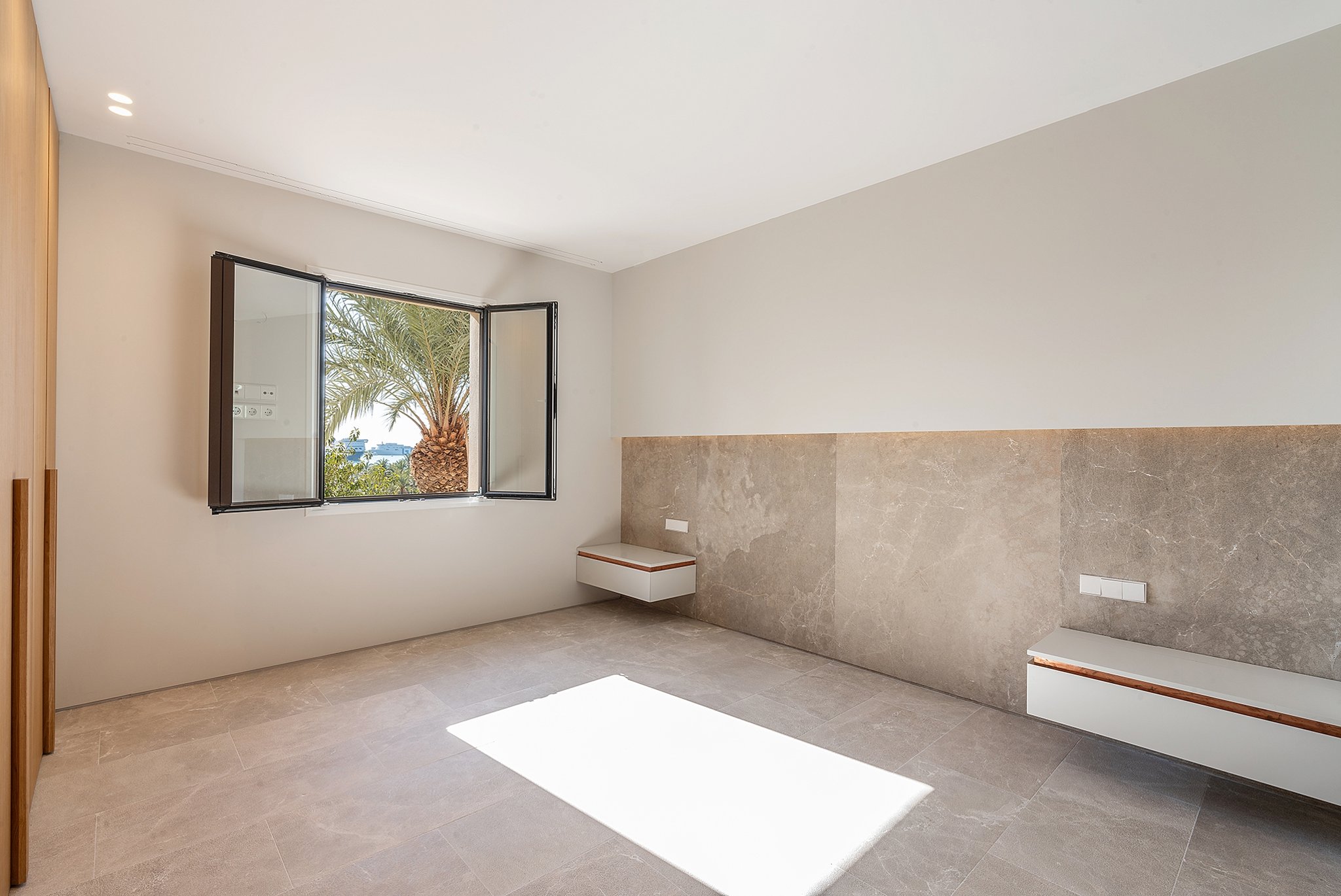 Lejligheden er designet af Studio of Interior Architecture Negre, og alle materialer til både interiør og eksteriør er naturlige, omhyggeligt udvalgte og af høj kvalitet, hvilket giver dette hjem sin ægte Mallorca-følelse. Den 170 m2 store lejlighed har højt til loftet, en stor stue/spiseplads, et topmoderne køkken og en stor terrasse på 19 m2, som er perfekt til at spise under stjernerne. Læg dertil de rummelige soveværelser og en-suite badeværelser, og du har det ideelle sted til en familie eller til at modtage gæster.
