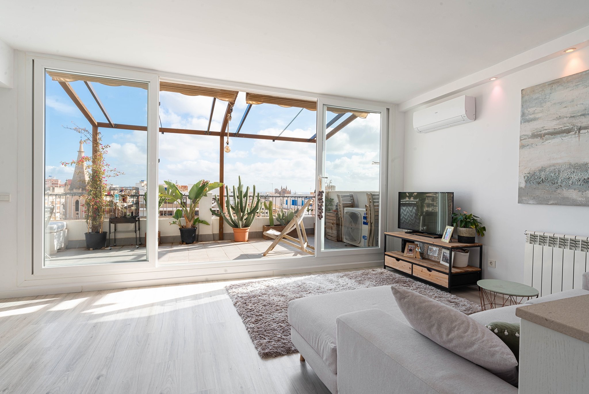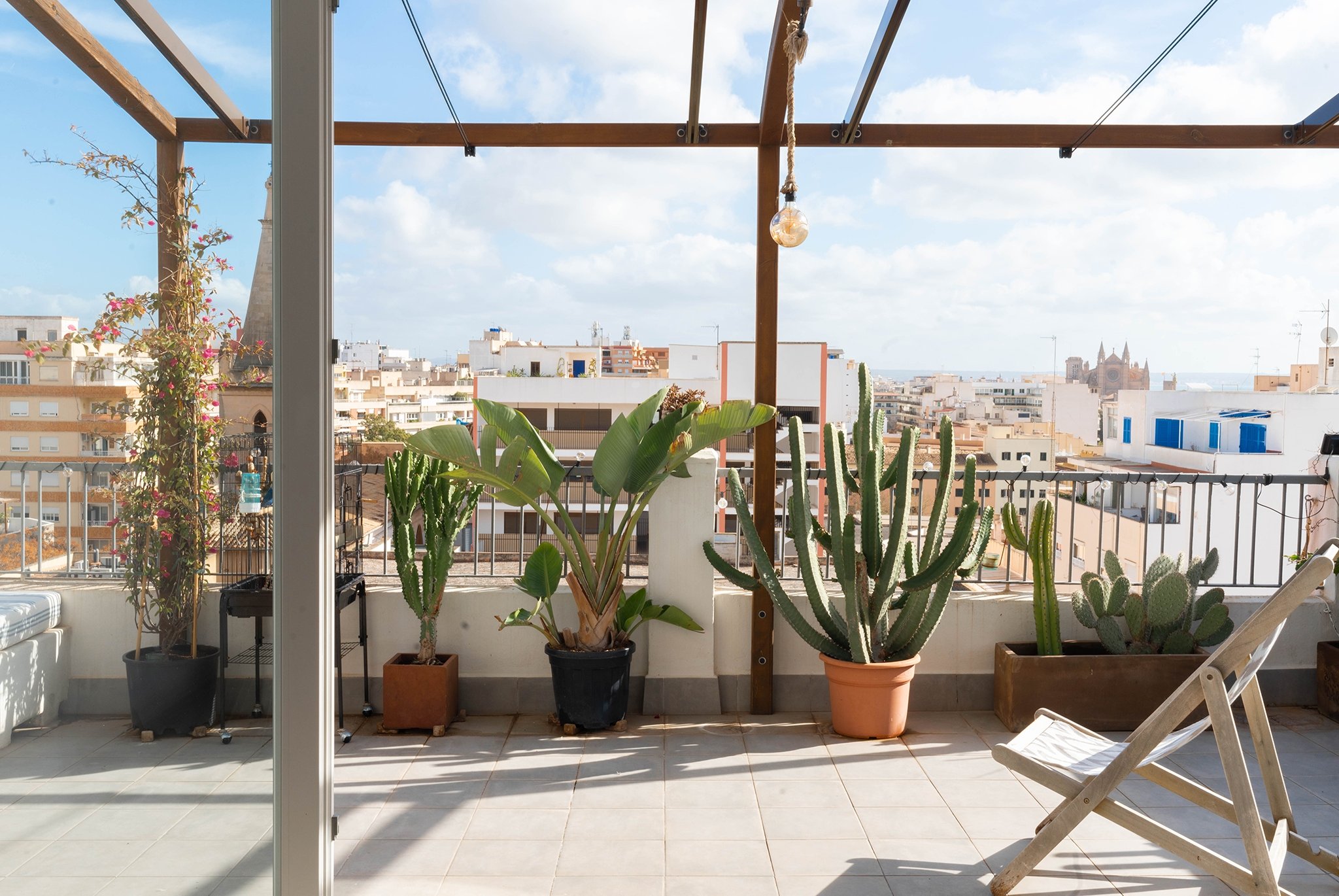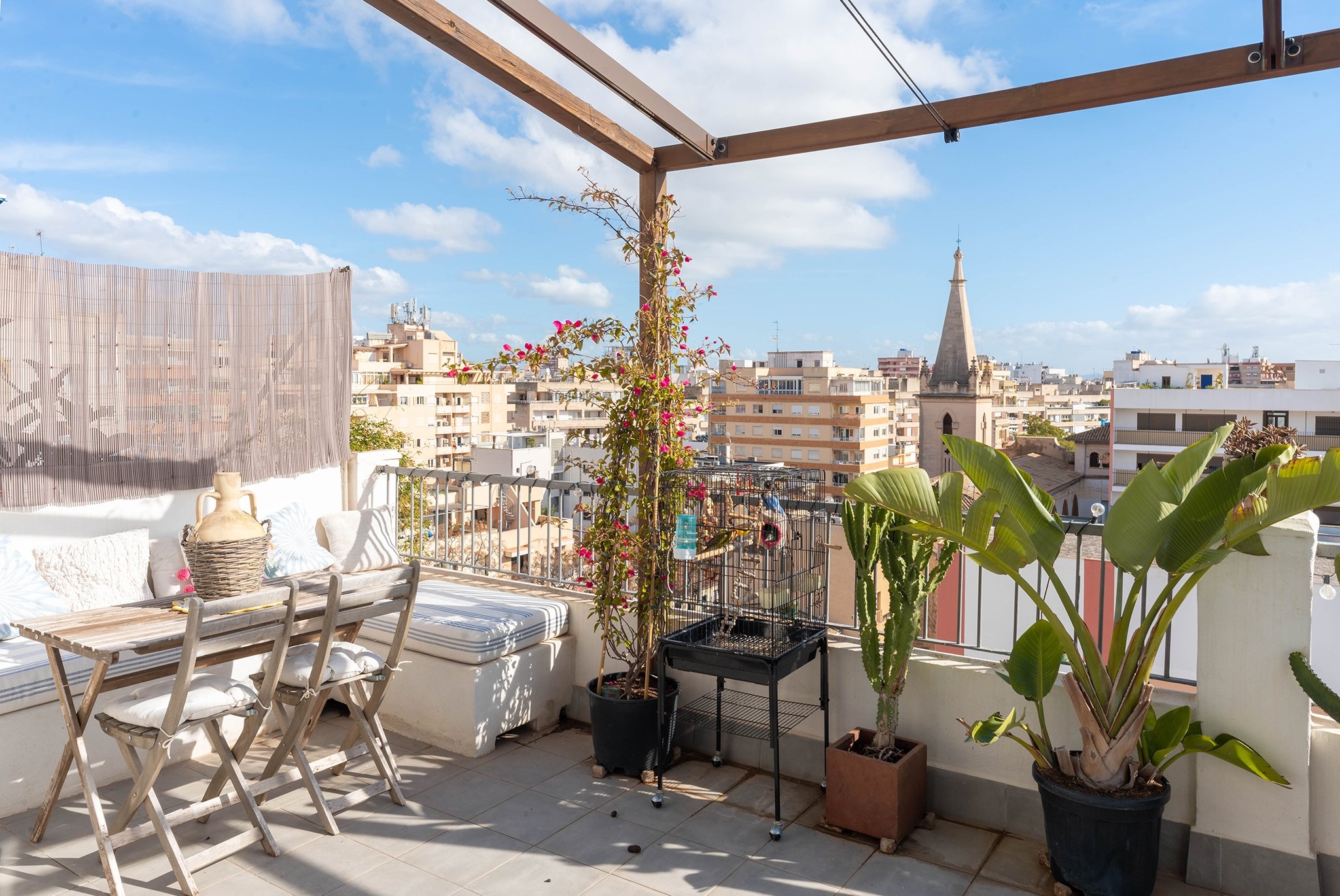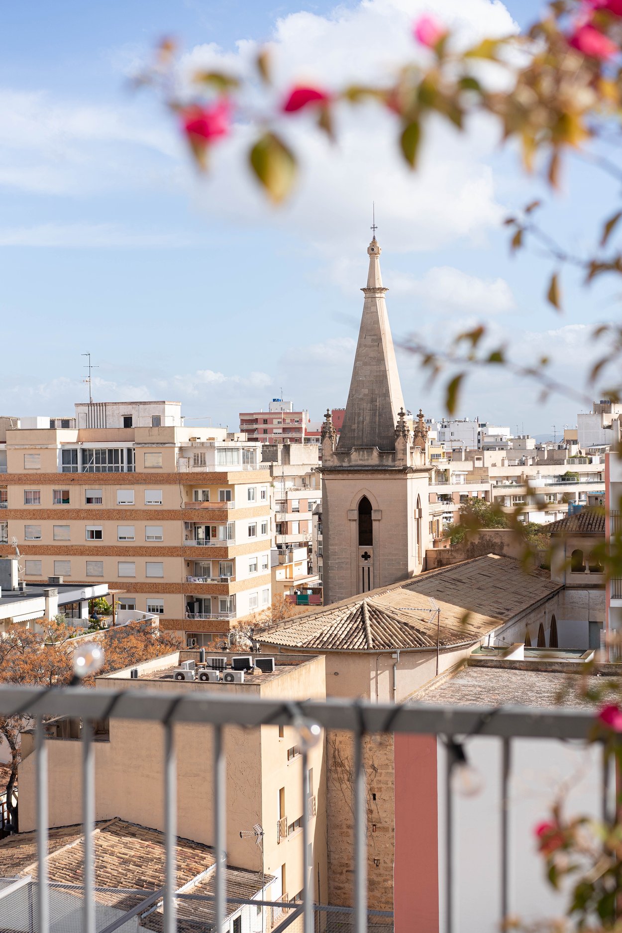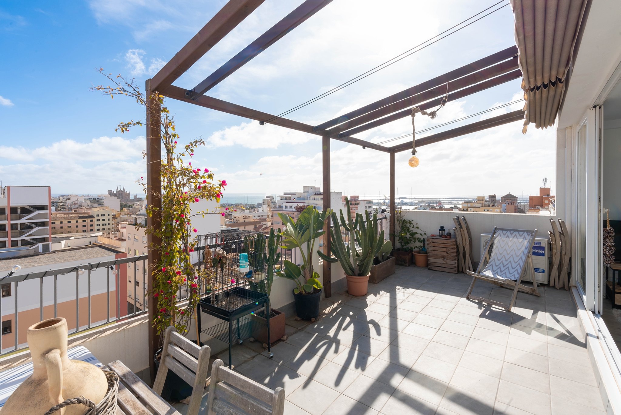 Højdepunktet i denne lejlighed er uden tvivl den solrige terrasse med panoramaudsigt over havet, bjergene, Bellver Slot, katedralen og de charmerende gader i Santa Catalina.