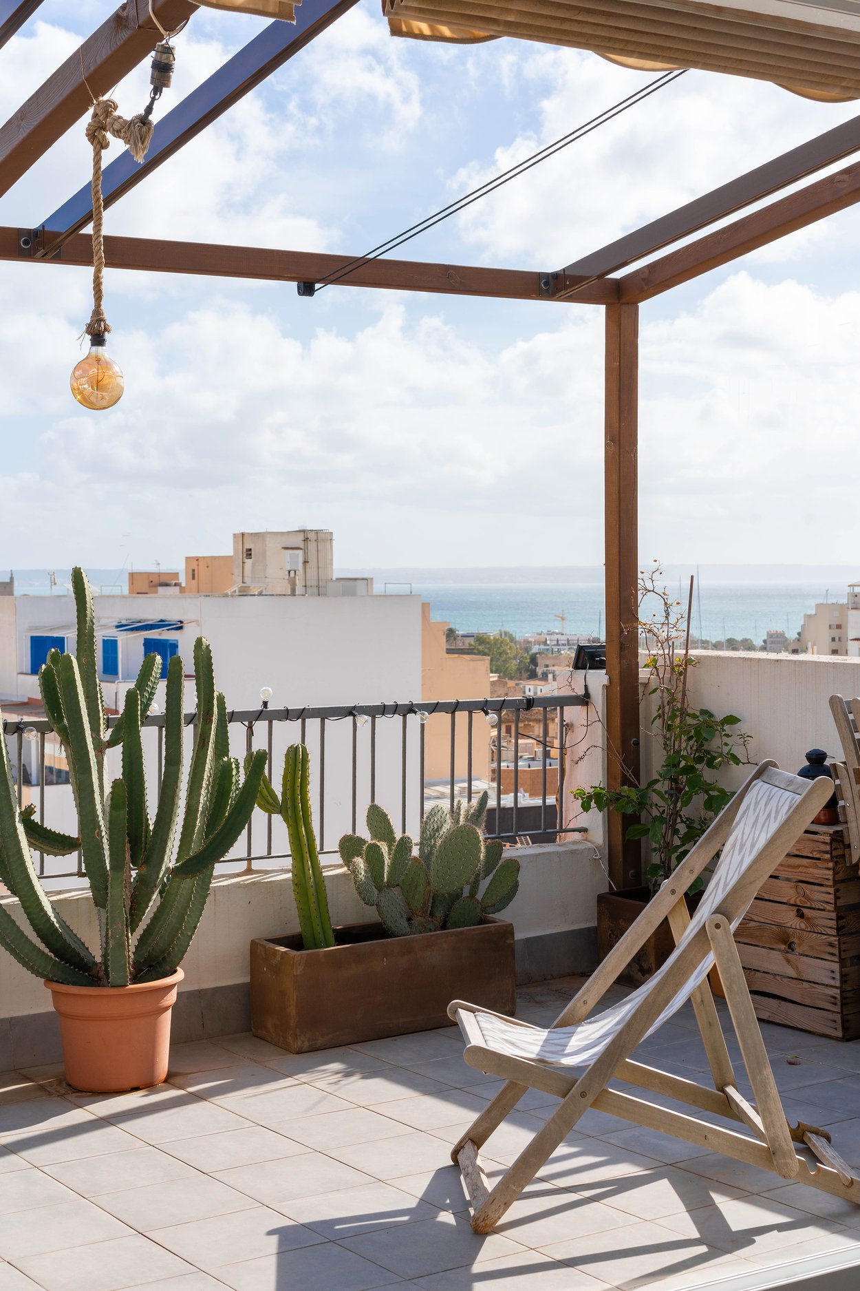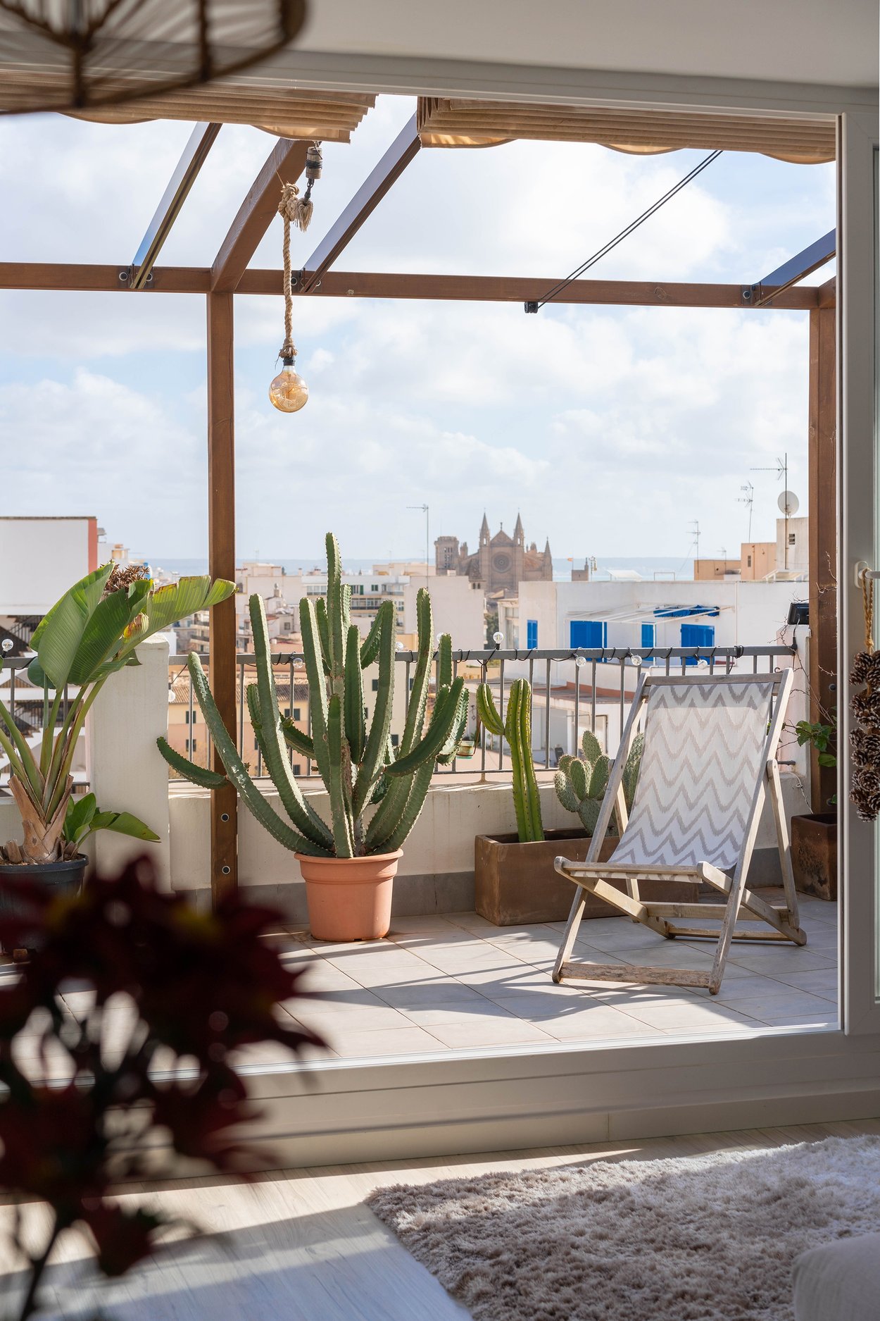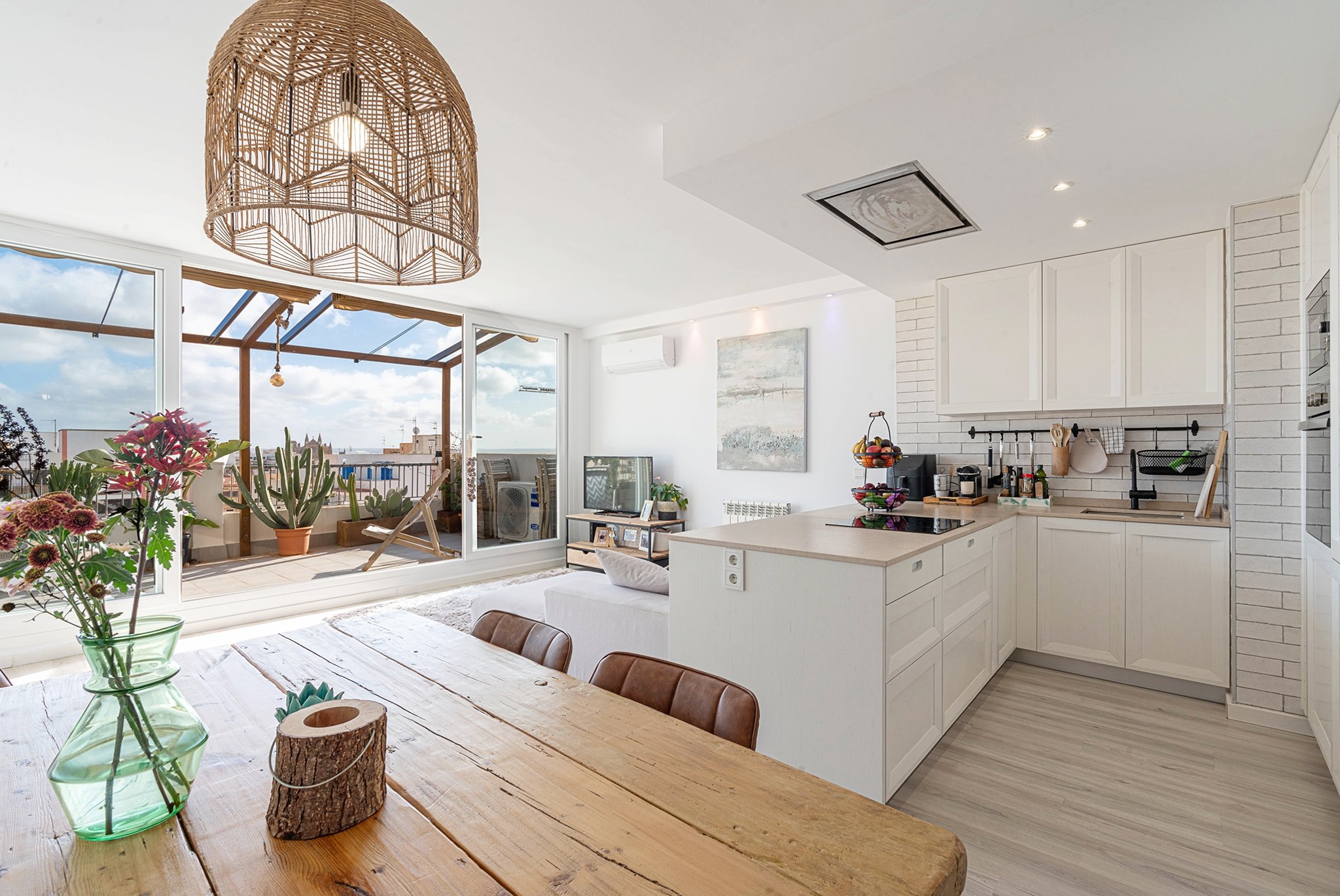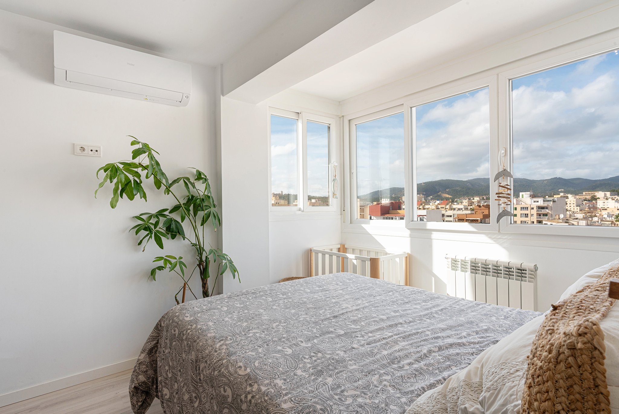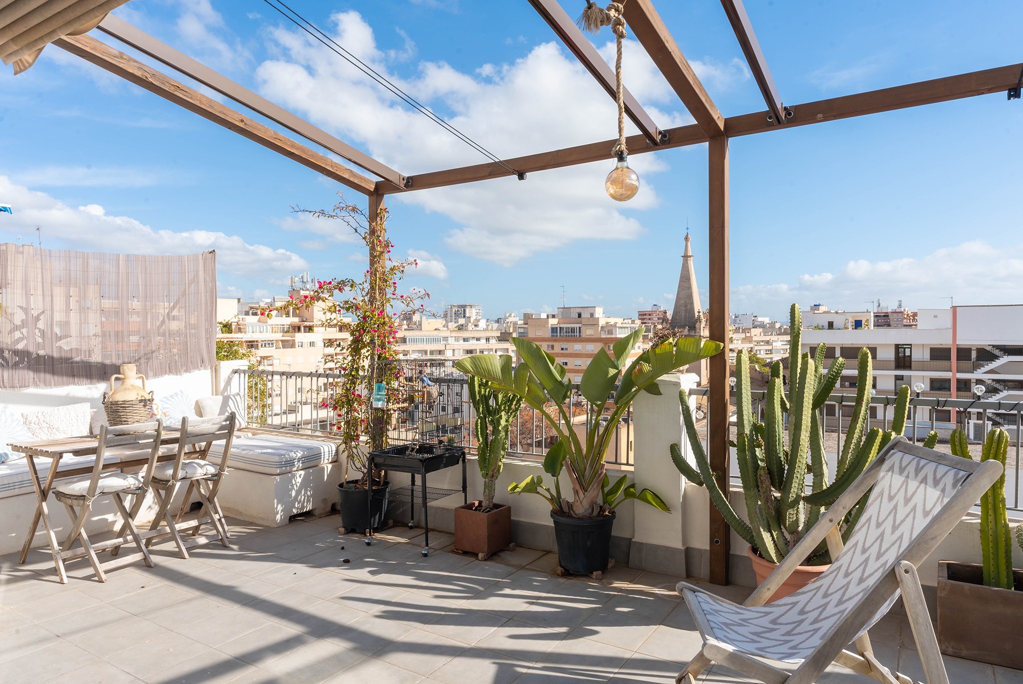 Højdepunktet i denne lejlighed er uden tvivl den solrige terrasse med panoramaudsigt over havet, bjergene, Bellver Slot, katedralen og de charmerende gader i Santa Catalina.