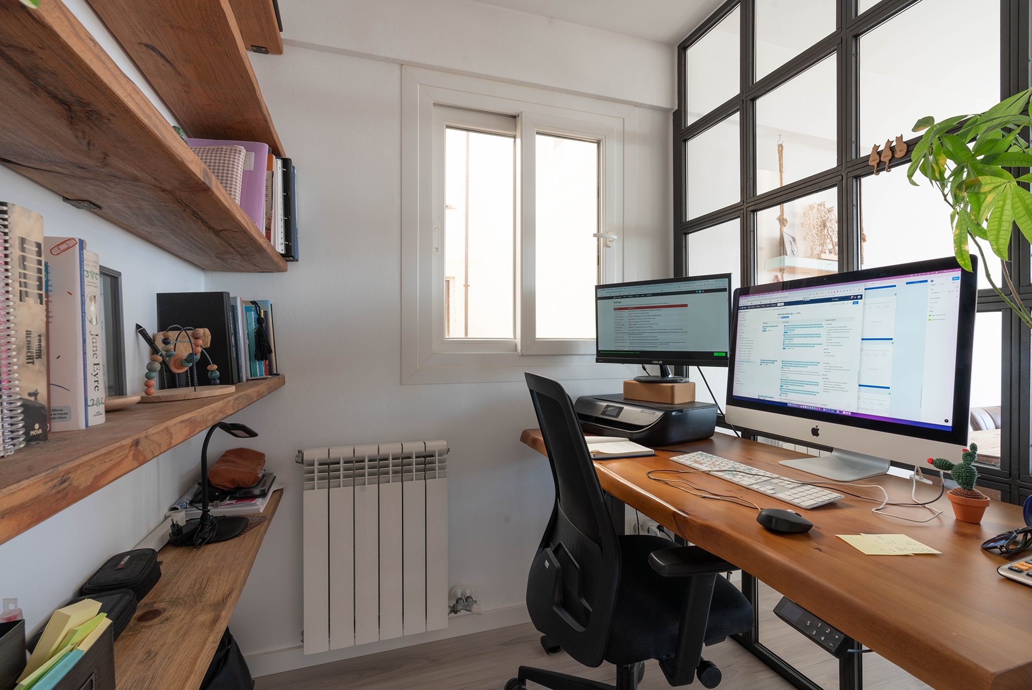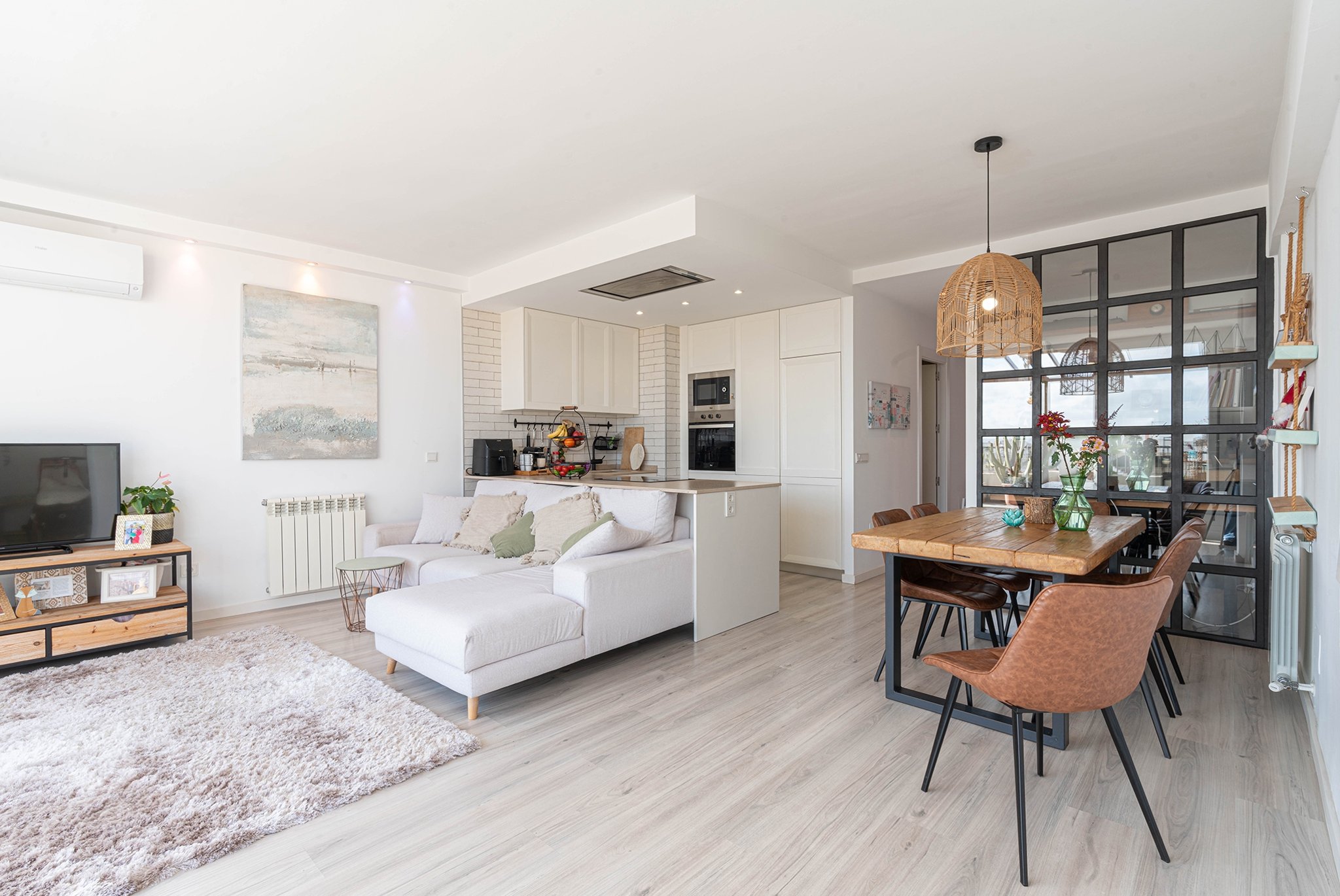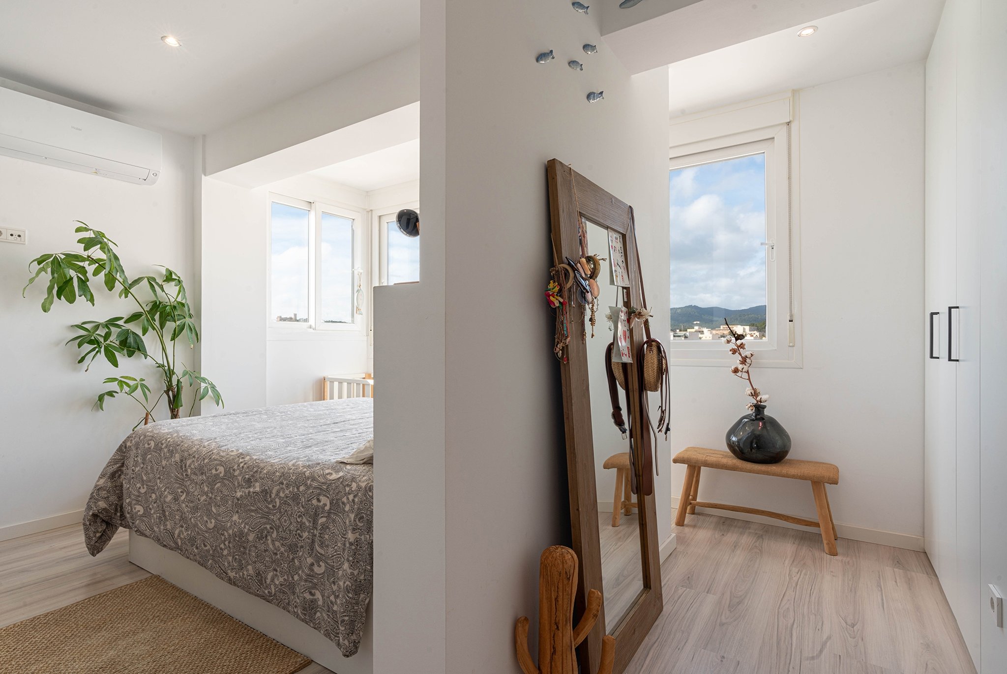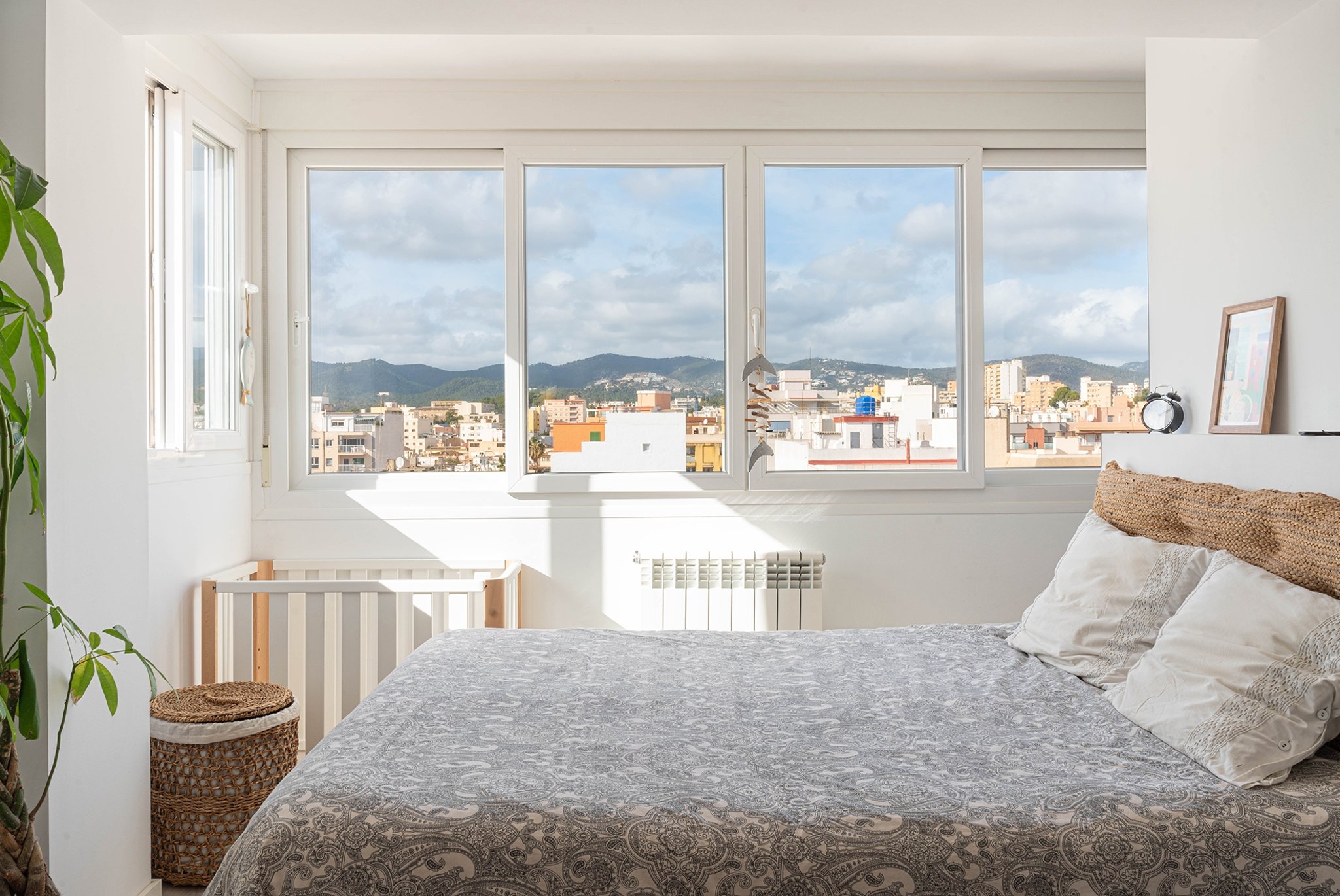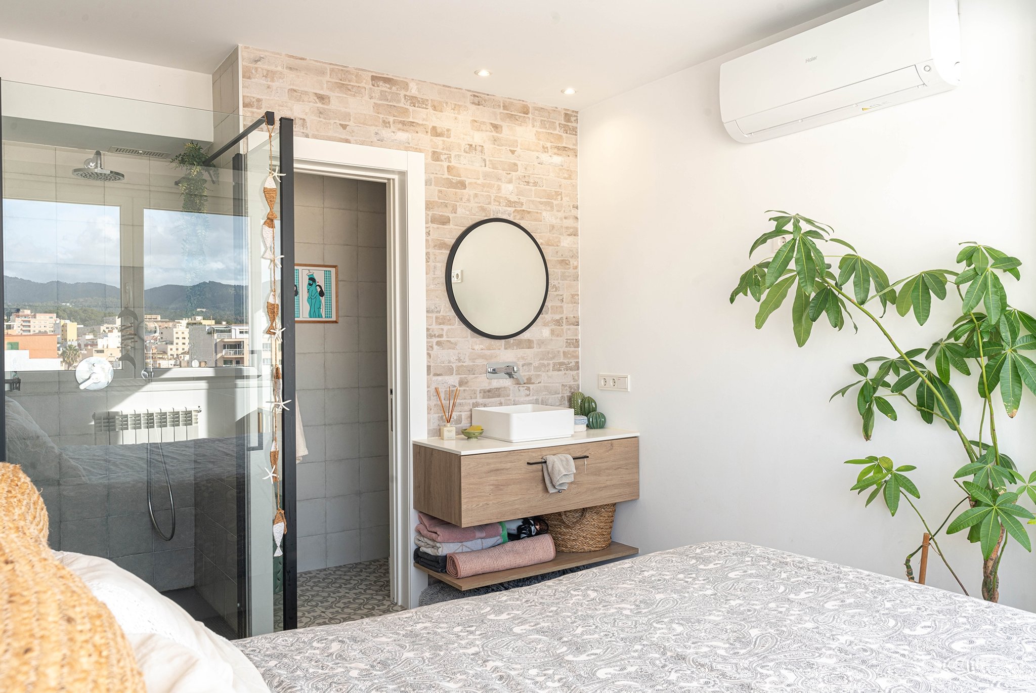 Højdepunktet i denne lejlighed er uden tvivl den solrige terrasse med panoramaudsigt over havet, bjergene, Bellver Slot, katedralen og de charmerende gader i Santa Catalina.