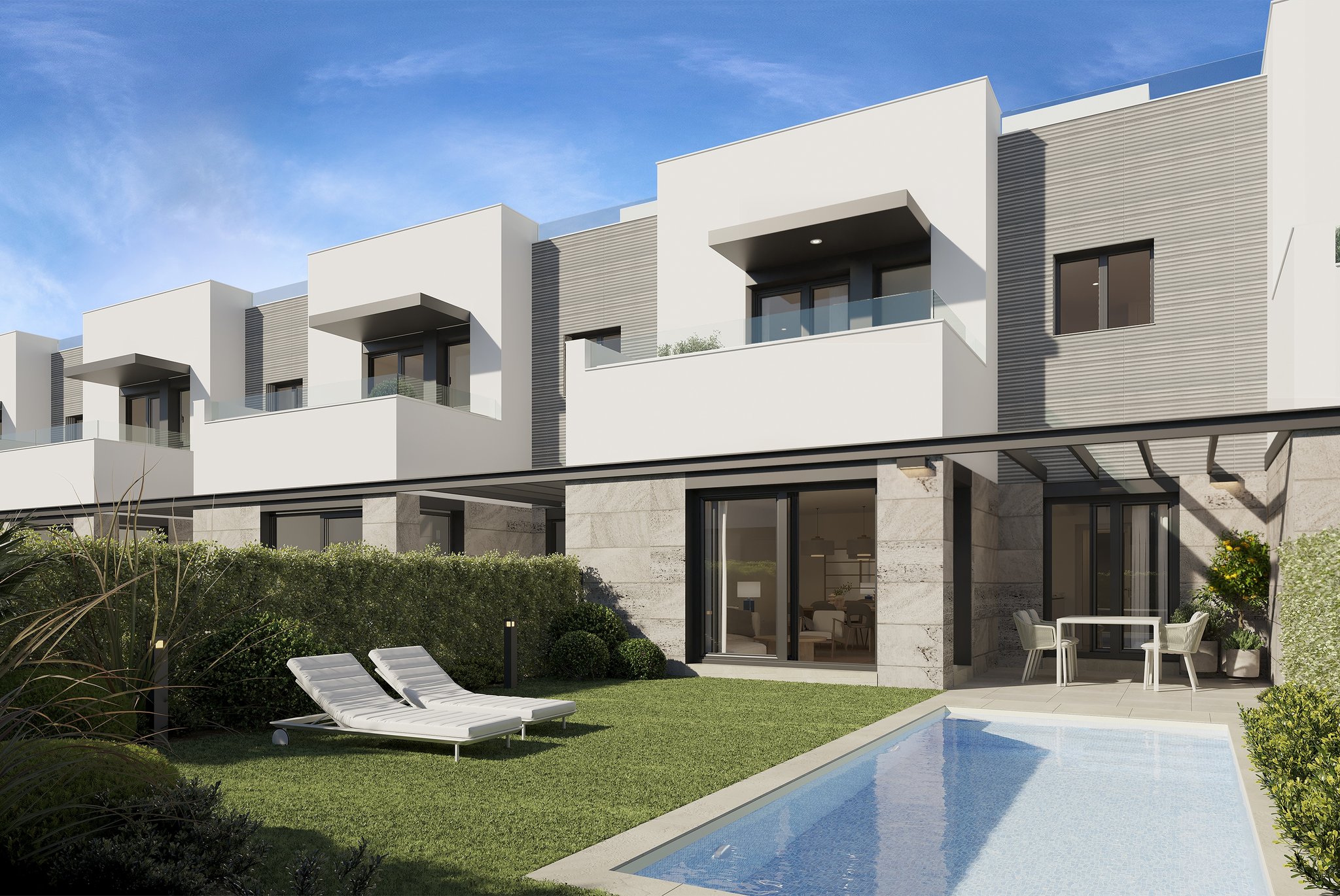 Rækkehus med privat have, pool og tagterrasse