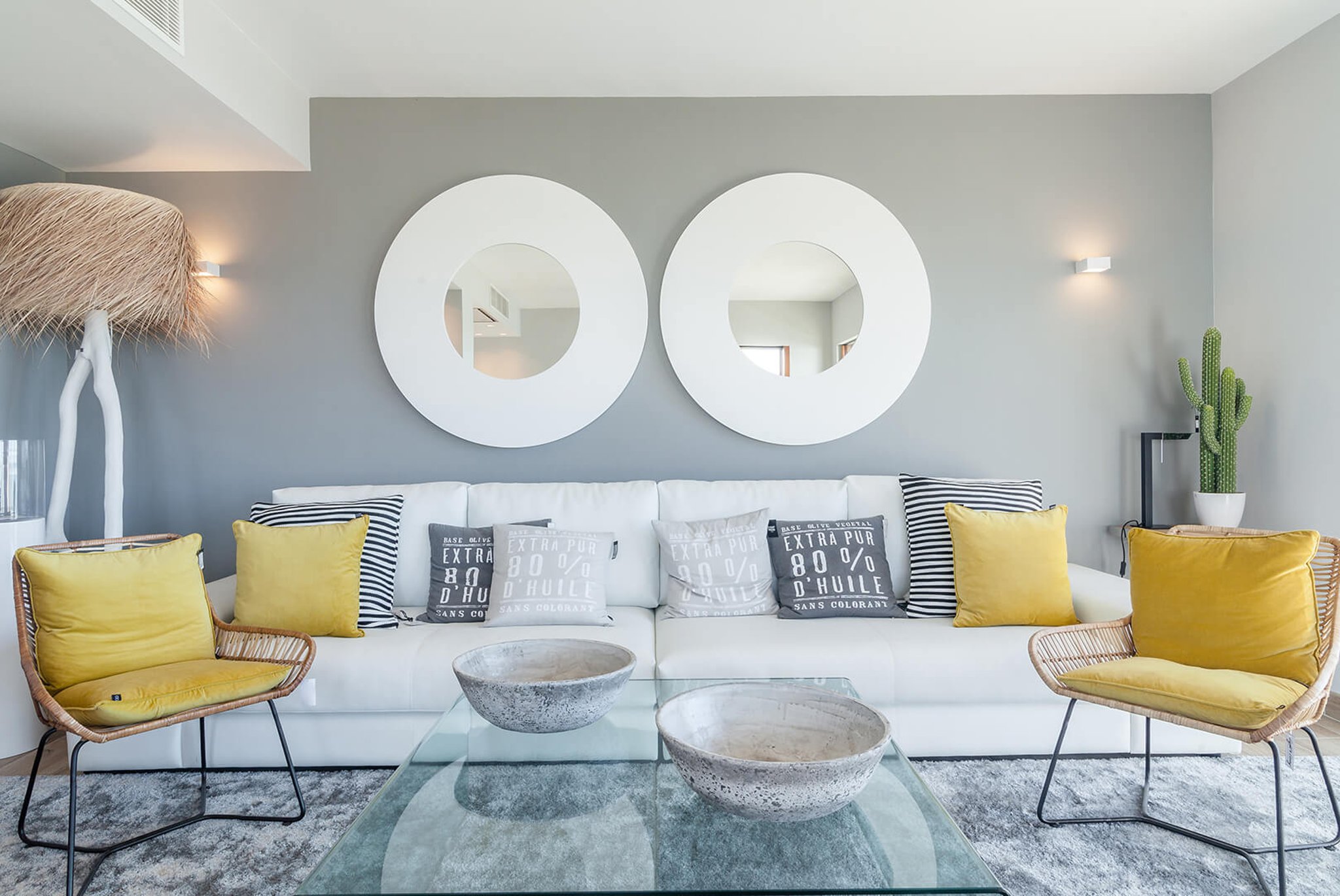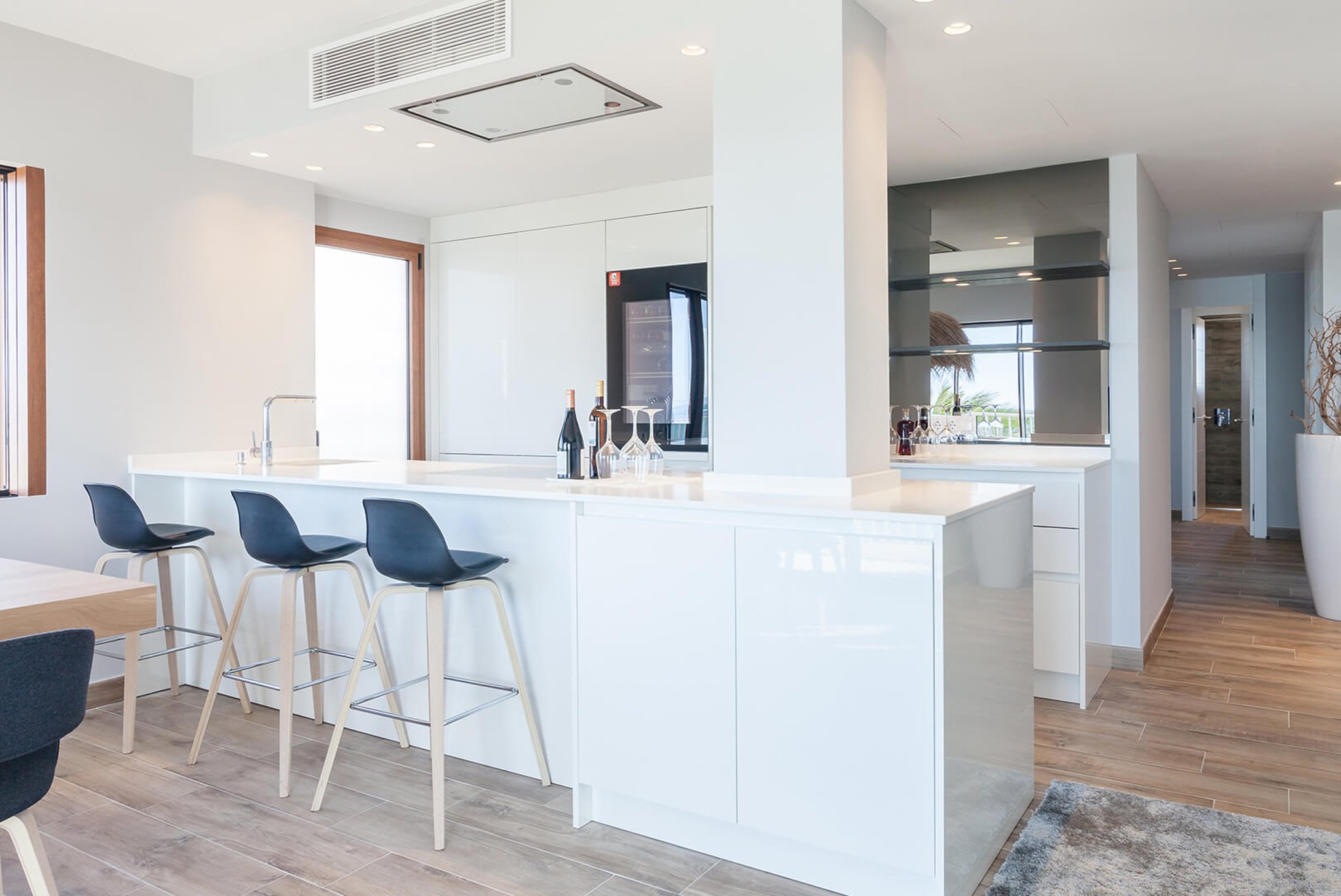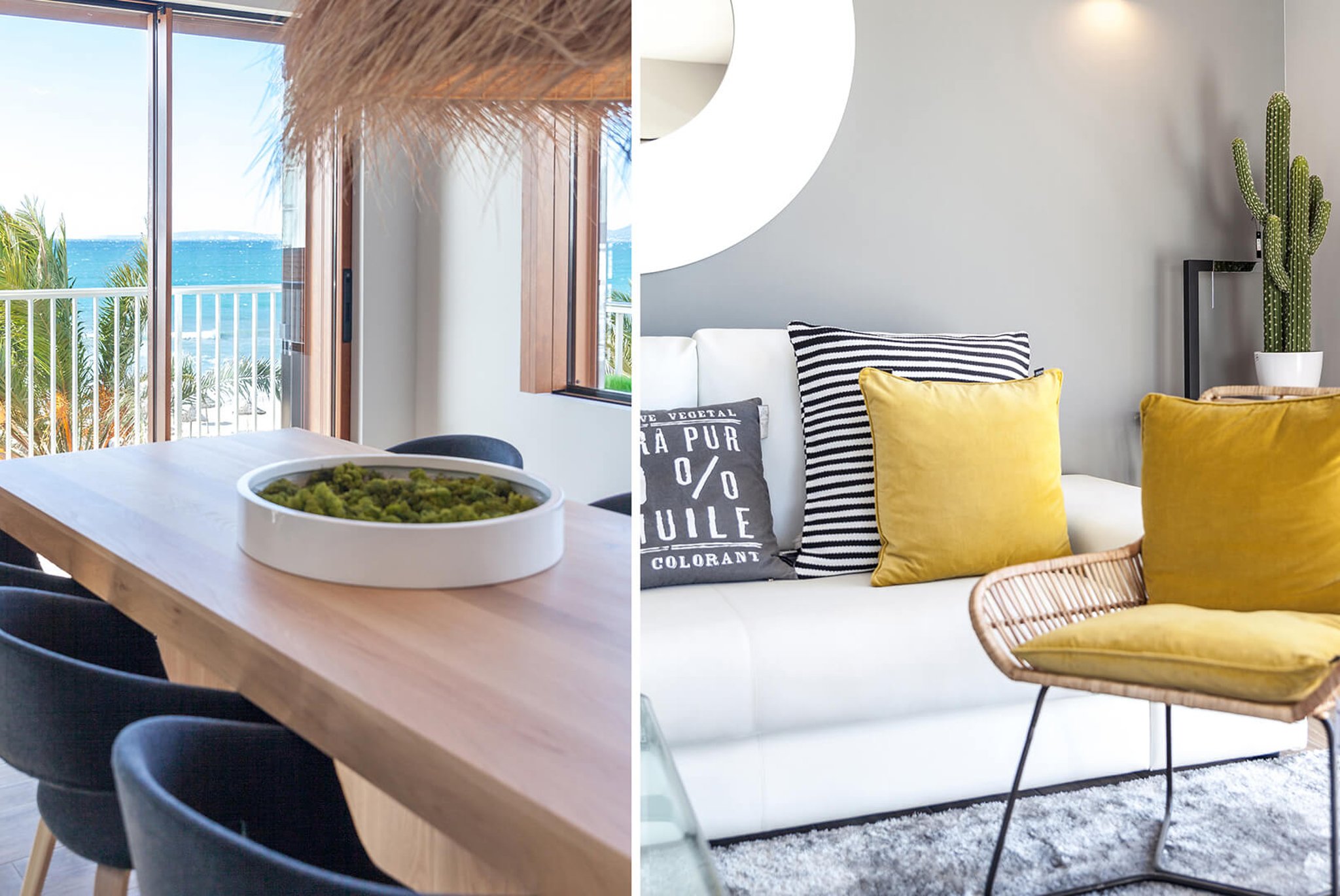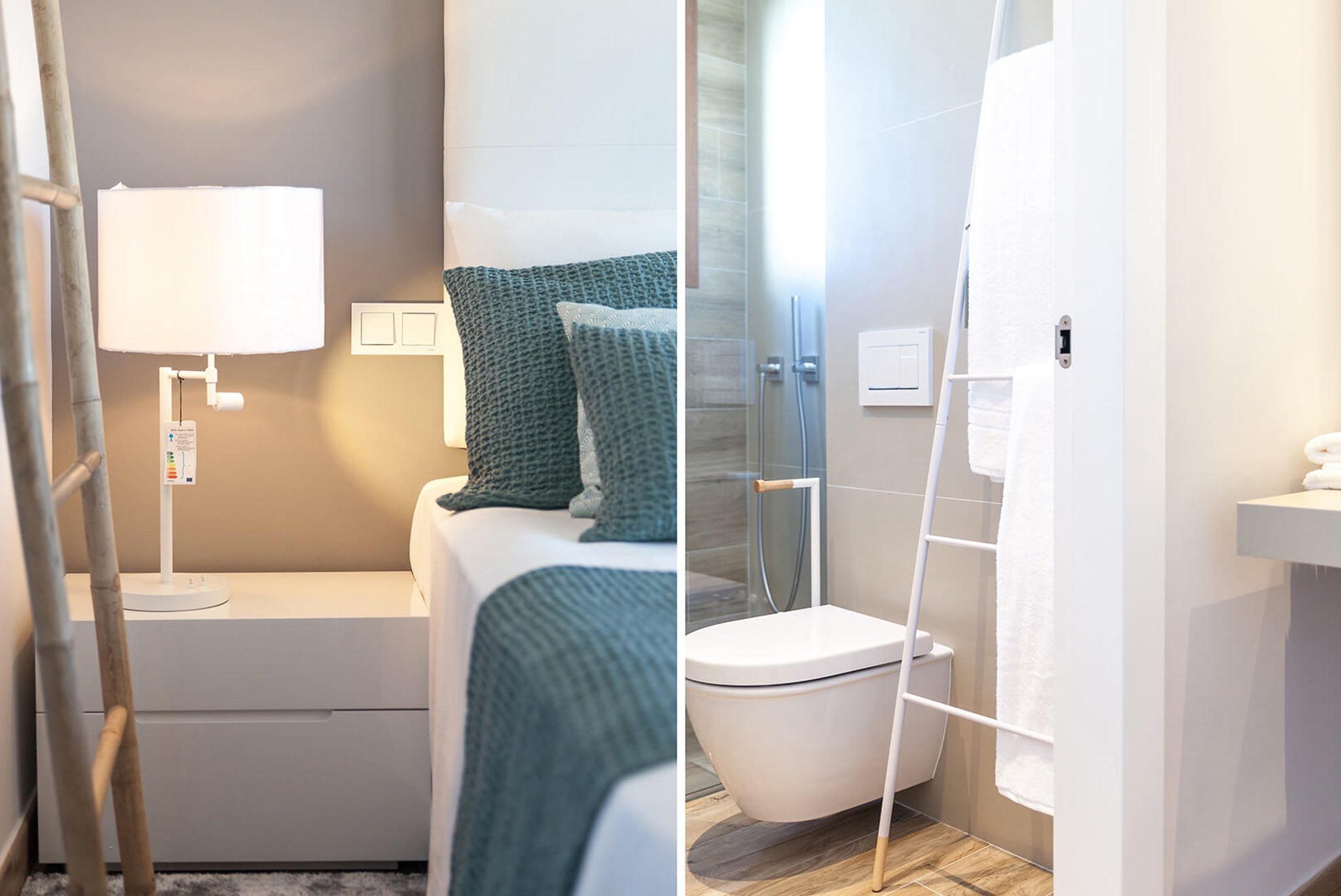 This is a newly renovated modern apartment in top condition, located on the first line and on the promenade of Playa de Palma. It has a living space of 90m2 which is divided into 3 bedrooms, 2 bathrooms of which one en-suite, a large airy living room with open floor plan, where both kitchen and dining area can be accommodated, and a large lovely covered terrace with sea views. The apartment has large panoramic windows that let in a lot of natural light and therefore also gives it a feeling of large airy surfaces. The terrace is 15 m2 and has a fantastic view of the bay of Palma. Interior design and lighting are of high quality with a modern design. Palma city center is only 15 min by car and the airport barely 10 min.